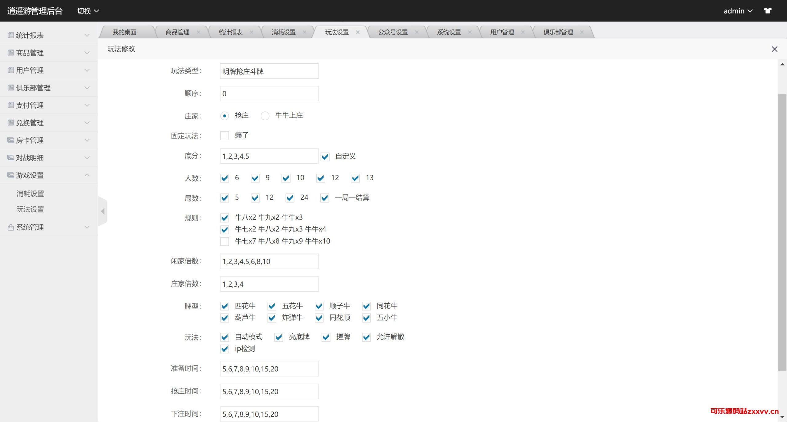带有俱乐部,斗地主,牛牛,十三水,广西十三水,天九,三公,超级三加一,大吃小,跑得快,麻将,百人斗牌